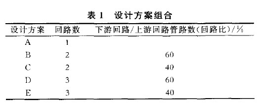 對于某一機組的冷凝器,設(shè)計了5種回路比 例,如表1所示。